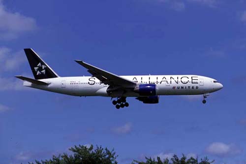ユナイテッド航空 B777-222/ER スターアライアンス10周年記念のロゴ