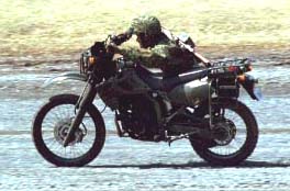 なおオートバイを操る偵察隊員の任務は極めて過酷であり、モトクロスとトライアルを併せた様な繊細かつ大胆なマシンコントロールを要求される他、乗車したままの射撃が要求される。
